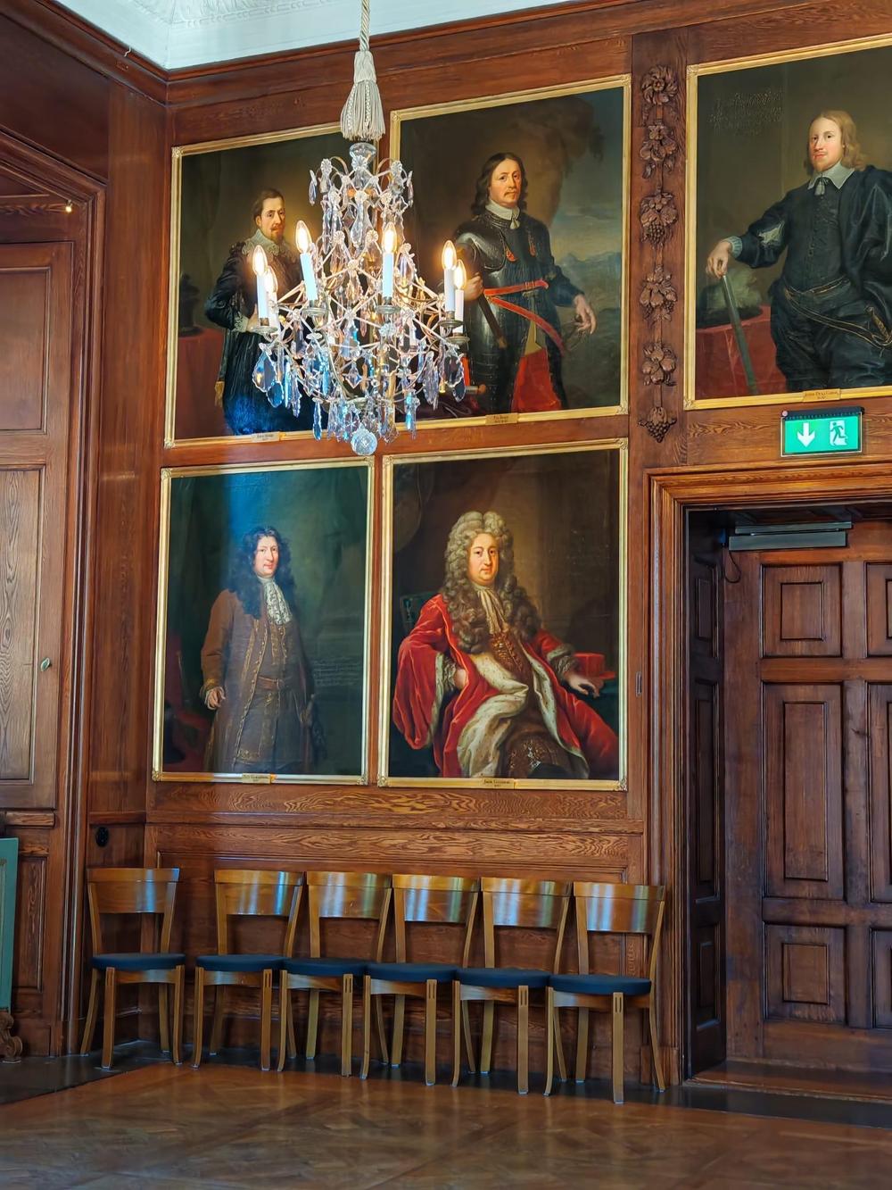 Tukholmassa Riddarhusetissa päägenealogi Magnus Bäckmark esitteli meille rakennuksen historiaa, kuinka talossa on kiivaasti aateliset päättäneet asioista ja missä kukin sääty on istunut. Samanlaista äänekästa tapaa käytetään vielä Englannin parlamentin istunnoissa.